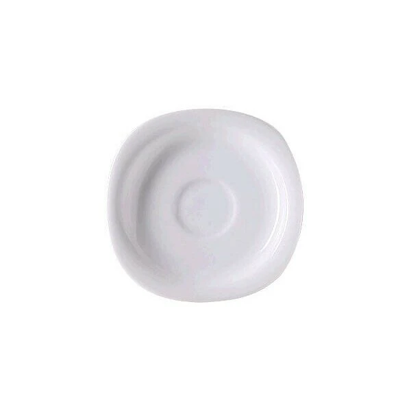 Die Espresso-Untertasse Suomi aus dem Hause Rosenthal besticht durch eine Kombination verschiedener geometrischer Formen. Der eigentliche Teller besteht aus einem Quadrat mit abgerundeten Ecken und die Abstellfläche für die Tasse aus einem Kreis. Dieses Design sorgt für einen modernen Chic auf dem Tisch. Der Rand der Espresso-Untertasse Suomi ist sehr breit, sodass dort ein Löffel oder Gebäck platziert werden können. Die Untertasse ist für die Spülmaschine geeignet.